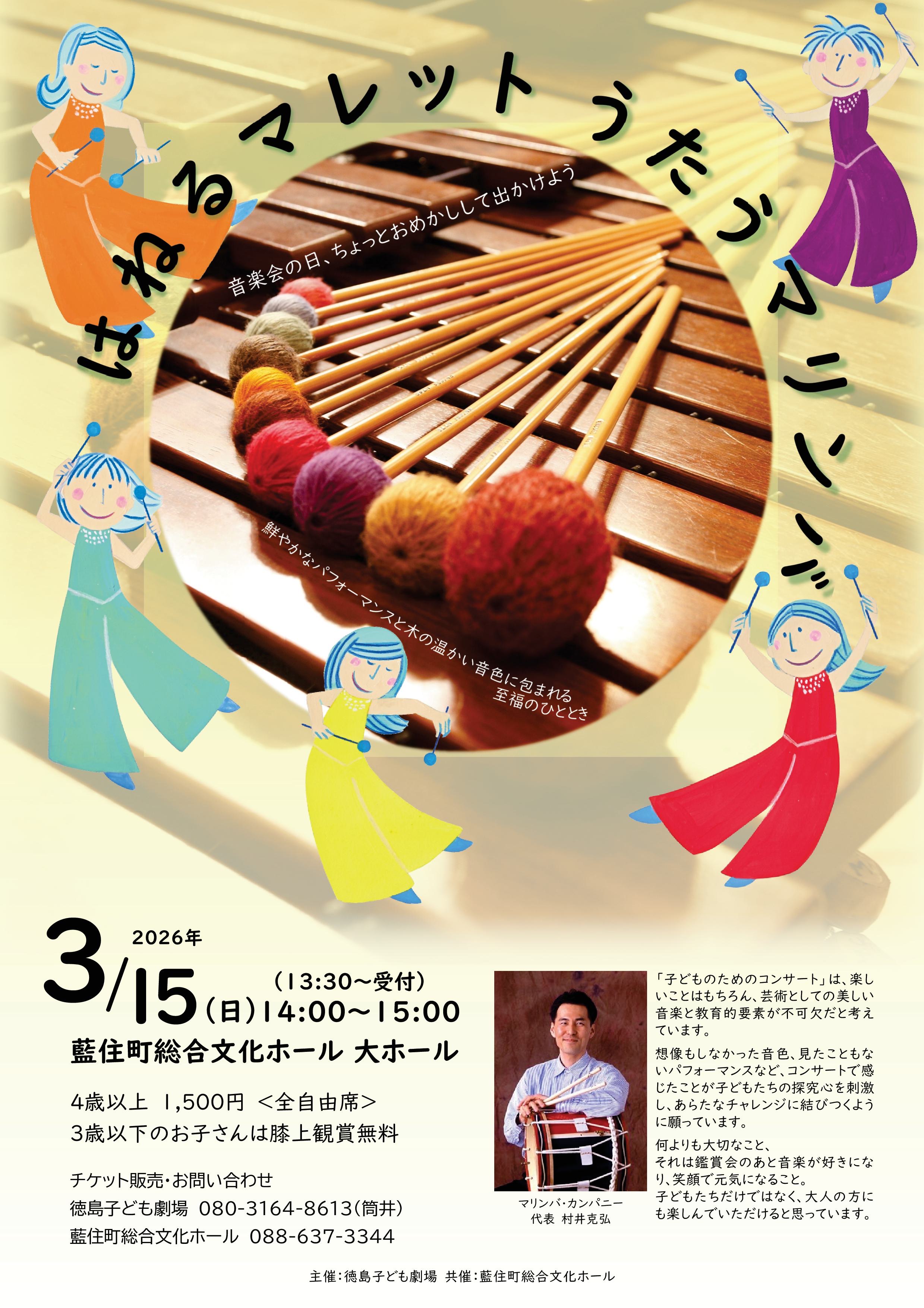 ![]() | 2026年03月15日(日) | 共催音楽 | はねるマレット うたうマリンバ(マリンバカンパニー) |
