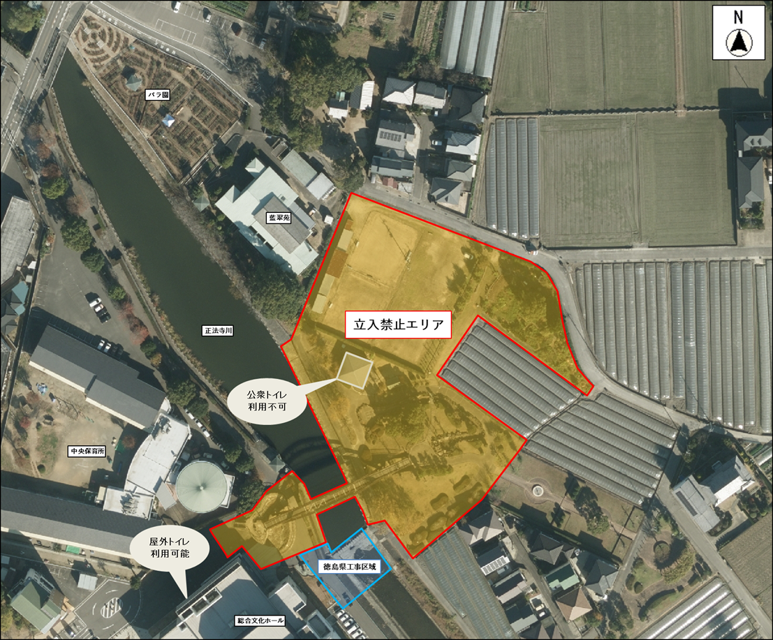 ※この区域内の公衆トイレについてもご利用になれません。総合文化ホールの屋外トイレをご利用ください。